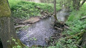 Fast unberührt fließt der Cederbach durch Garz und Hoppenrade. Leider wurde er in den 60-iger Jahren außerhalb der Orte "begradigt" und hat viel von seiner Natürlichkeit verloren. Nicht nur viele Mäander, auch Aal und Flussmuschel waren danach verschwunden. Hier hinter dem Feuerwehrhaus sieht man die Idylle, die sich der Cederbach trotz allem bewahrt hat.