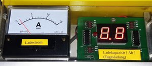 Mit dieser Messeinheit wird die tägliche Ladung des Akkumulators kontrolliert und in Ampere/Stunde [Ah] angezeigt. Der Messbereich reicht von 0,1 Ah bis 99 Ah. Dieses Arduino Projekt habe ich auch schon an anderen Stellen genutzt. Hier läuft es auf einem Atmega 328 Mikrocontroller.